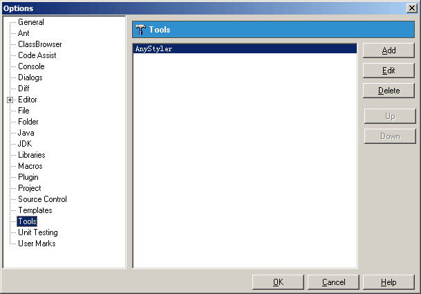 2. Click the "Tools" tree item, then click "Add" button to add a new tool.
