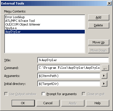 3. Type an ampersand before one of the letters in the tool name to create an accelerator key for the command when it appears on the Tools menu. For example, if you use "&FormatCode", the letter 'x' will be the accelerator key.